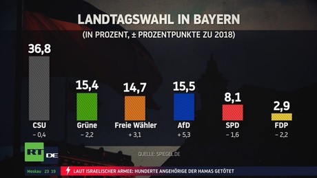 In Bayern und Hessen fanden Landtagswahlen statt. Die Ergebnisse zeigen, dass alle Ampel-Parteien mehrere Prozentpunkte im Vergleich zu den vergangenen Jahren verloren haben. Nach den Landtagswahlen in Hessen und Bayern räumte Innenministerin Nancy Faeser (SPD) eine Niederlage der hessischen SPD ein. Hessens amtierender Ministerpräsident Boris Rhein (CDU) erklärte sich hingegen zum Wahlsieger. Hessen hätte sich für "Stil, Stabilität und sanfte Erneuerung" entschieden.